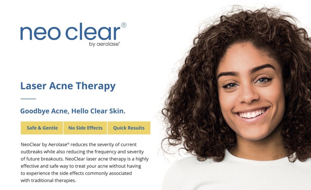 NeoClear by Aerolase offers patients of all ages and skin types a new safe, effective, and tolerable acne laser treatment using advanced 650-microsecond technology. NeoClear is a powerful system that eliminates the major factors causing acne, including excess sebum production, inflammation, and the p. acnes bacteria.